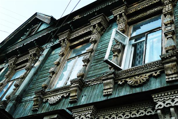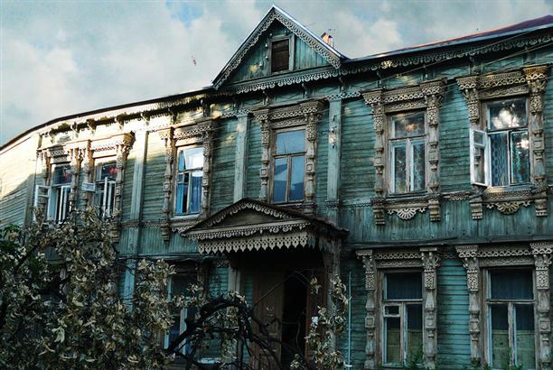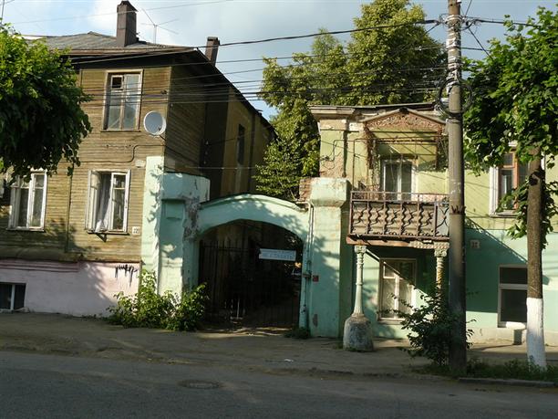 В Рязани очень нескучная архитектура. никакой стройности, симметрии, гармонии. Очень много старых домов и очень много старых ДЕРЕВЯННЫХ домов. Причем они живут одиночками :) То есть идет улица, на ней всего нагорожено (сталинки и не сталинки) и вдруг оп! Маленький, почти сказочный теремок. этот, например, на Введенской улице.