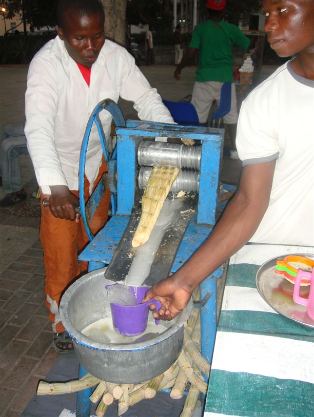 А это процесс изготовления сока из сахарного тростника. Сладко, но освежает!
