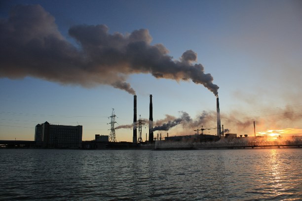 Вид на медный завод с крыши 12 этажного дома. Раскрашивать дома в яркие цвета - отличительная черта городов заполярья.