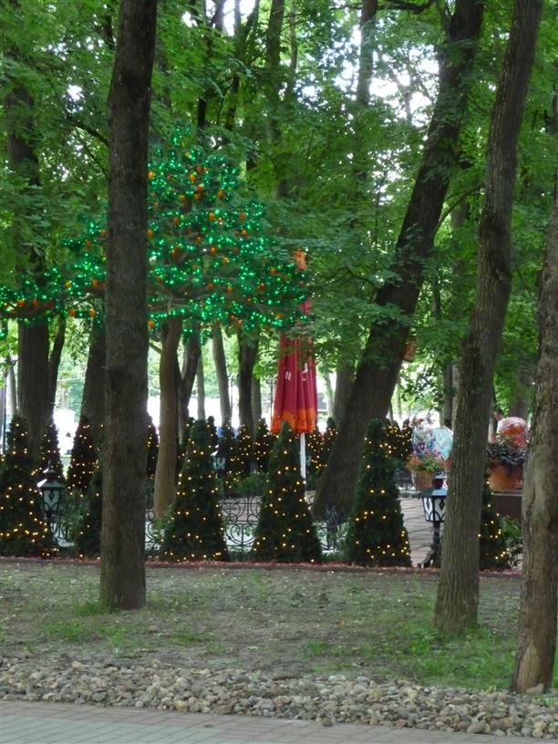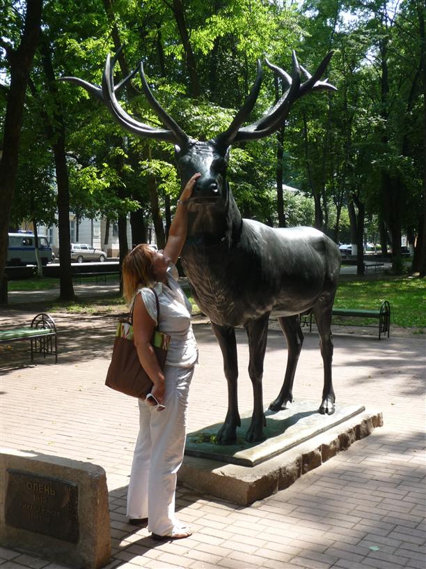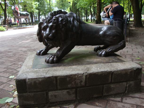 А все там же, недалеко от «Русского дворика» в «саду Блонье» красуются бронзовый олень и два льва. Что бы к ним попасть Вам предстоит пройти мимо светомузыкального фонтана, который возможно, порадует вас своим «танцем», конечно же ему далеко до Питерского, Липецкого и других. Но все же он имеется, со своей мелодией и танцем. Совсем рядом с бронзовыми зверюшками памятник Глинке.