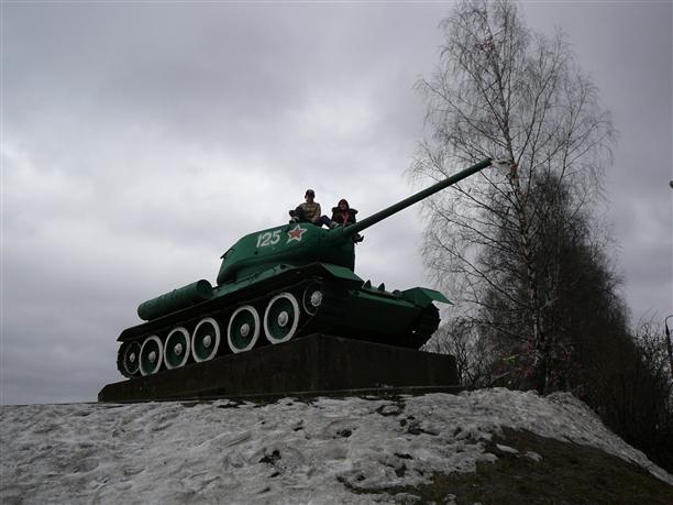 Каждый, кто подъезжает к Смоленску со стороны Демидовского шоссе, еще издалека видит боевой танк Т-34. К нему мы тоже съездили. И уж если мы пошли по тяжелой технике, то есть у них еще и Самолет Ту-16 на ул. Багратиона.