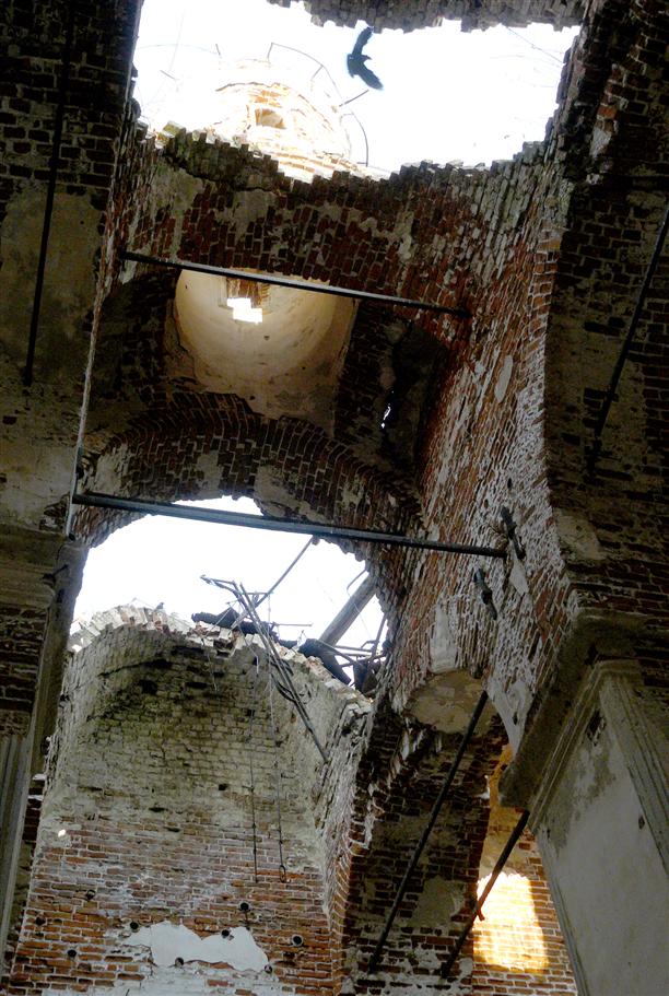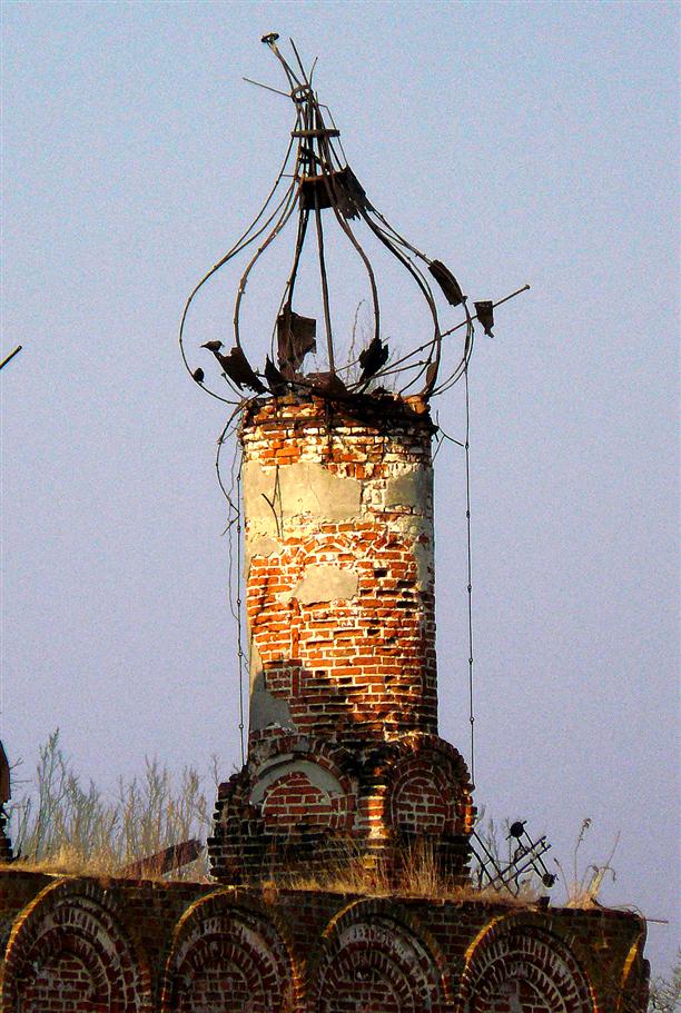 Белев - необъяснимое место. Как и эта могила возле туалета... Как и птица, вынырнувшая откуда-то из темноты, и чуть не выбившая фотоаппарат у меня из рук... Как и дырявый купол с провалившимся крестом...