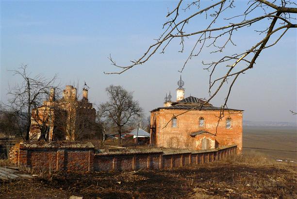 "Мы в город изумрудный идем дорогой трудной!". По территории монастыря выложена дорожка из желтого кирпича. Не исключено, монахом Никодимом! На крепостных воротах упреждающая надпись: "Отец Никодим против вторжения в быт монахов, против фото- и видеосъемки". На самом деле, территория монастыря настолько пустынна и не охраняема, что ни монахов, и вообще никого мы не встретили. Только черные птицы! Везде среди развалин...