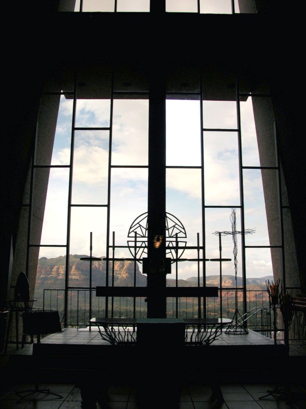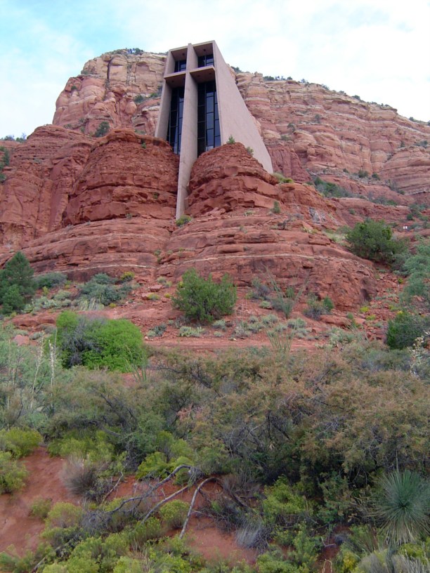 Индейцы здесь тоже спешат за временем. Вот такая индейская церковь Святого Креста встроенная в скалу