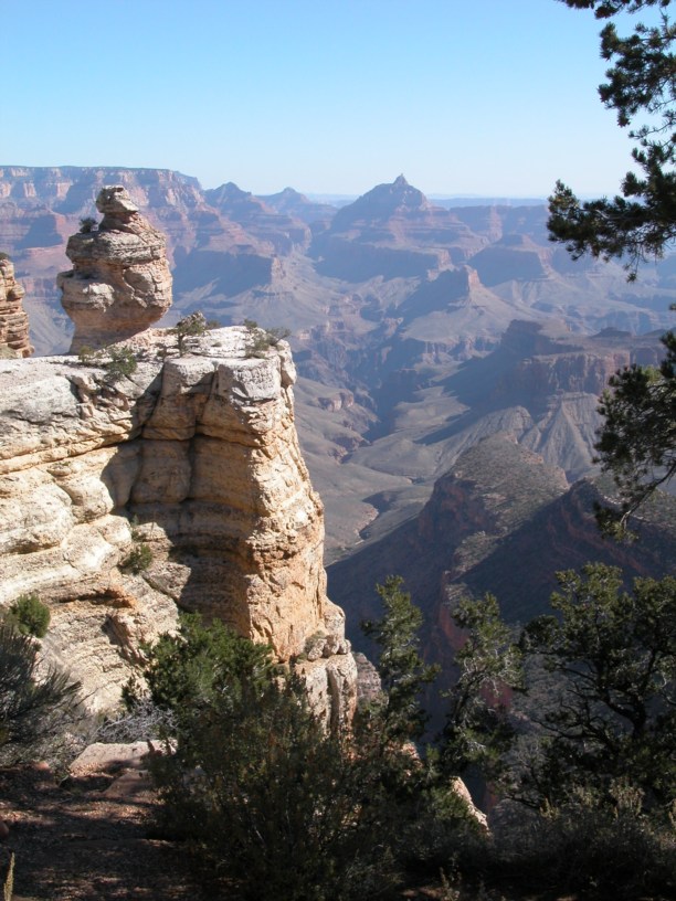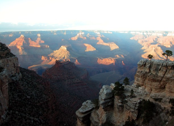 Вообще-то, этот спуск должен был стать центральной частью нашего путешествия. Всё остальное наросло вокруг него по мере планирования и изначально мы должны были провести в каньоне два-три дня с ночёвками в палатках и при удачном стечении обстоятельств даже намеревались перейти Grand Canyon и спустившись с южной кромки подняться на северную. Наиболее горячие из нас даже закупили неслабые рюкзаки и прочий походный инвентарь.
