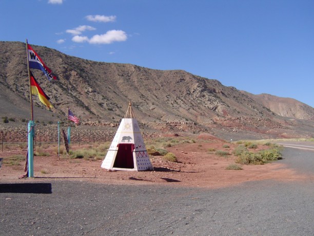 Земли на северо-востоке Аризоны принадлежат индейцам. Кроме дорог, которые принадлежат федеральному правительству. Поэтому ехать довольно занимательно, вдоль всего хайвея на расстоянии ~10 метров от обочины тянется чисто символический заборчик сантиметров 70 высотой, но перепрыгнув через него ты уже окажешся в индейской резервации. Конечной целью путешествия этого дня должен был стать городок Page. Ехать до него два - два с половиной часа, в зависимости от того насколько часто останавливаться для осмотра индейских сувенирных лавок вдоль дороги.