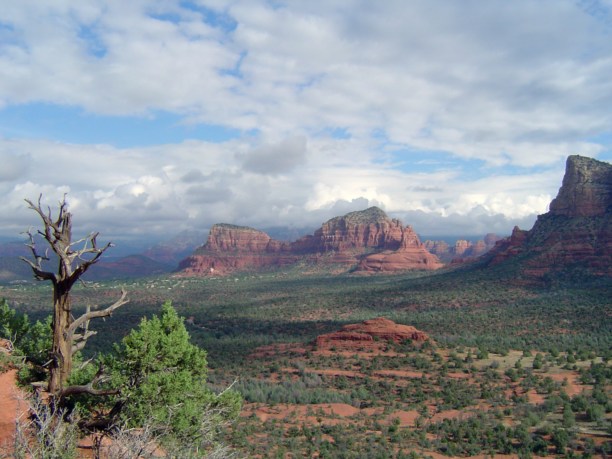 Sedona находится посреди Arizona, ровно на полпути между Phoenix и Grand Canyon, но не на основной дороге, а немного в стороне. В этом месте образовалась как бы долина и если смотреть из Sedona во все стороны, то кругом горы с отвесными стенами 100-300 метров высотой, расстояние между ними порядка десятка миль-километров.