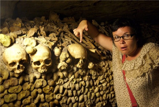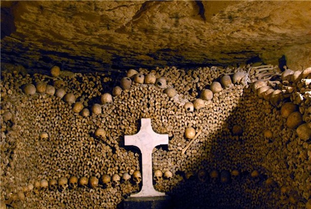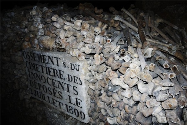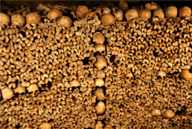 Парижский оссуарий (по-русски костница) основался в конце восемнадцатого века. Его разместили в заброшенных карьерах Томб-Исуар. Изначально в него свалили останки людей с кладбища Невинных. На протяжении 15 месяцев около двух миллионов скелетов вывозили с кладбища, дезинфицировали и укладывали в карьер. Делали это по ночам! чтоб не травмировать психику парижан :) Потом оссуарий пополнился костями и черепами ещё с 17 кладбищ Парижа. В настоящее время в катакомбах покоятся останки почти шести миллионов человек.