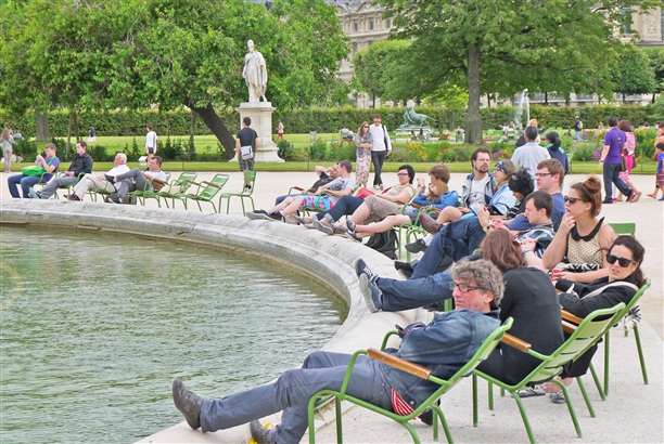 За аркой на площади Каррузель начинается парк Тюильри. Чем-то напомнил мне сказочное маковое поле, - попадаешь туда и забываешь, куда и зачем шел :) Зелёные лужайки, уютные скамейки, даже вокруг фонтанов - кресла, и везде - сонные мухи люди. Главное вовремя вспомнить, что надо бы и на Эйфелеву башню посмотреть ;))