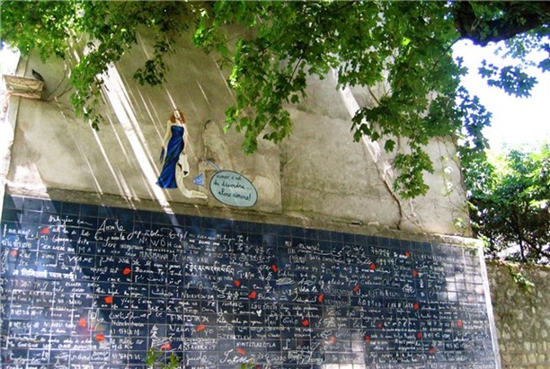 "Стена любви" - тоже на Монмартре, ближайшее метро - Abbesses. Фраза "Я люблю тебя" написана на 311 языках мира! Увы, вечером ворота в сквер закрываются и стена оказывается недоступной.