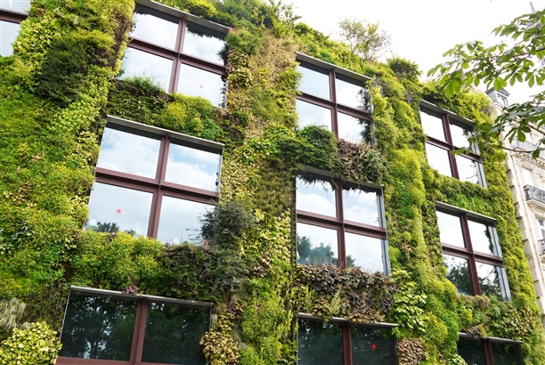 Недалеко от Эйфелевой башни стоит вот такой мохнатый дом. По его стенам струится вода, фасад живописно зарос разными травами-муравами, а из больших окон смотрят облака.