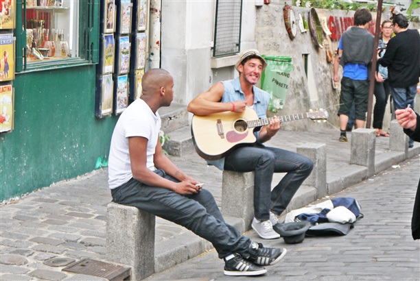 Район свободных музыкантов, художников и актеров :) ...Почему-то вспомнился Амстердам, где все шоу на улицах начинаются с объявления "ценника" и никто не выступает ради собственного удовольствия. Монмартр в Париже - другой :) Никаких "вымогателей". Ты не чувствуешь себя безбилетником. Скорее наоборот! Весь это уличный праздник - подарок ДЛЯ ТЕБЯ :) ...Точный расчет на "внутреннего интеллигента" - который вряд ли уйдет, не подбросив монетку над шляпой артиста ;)
