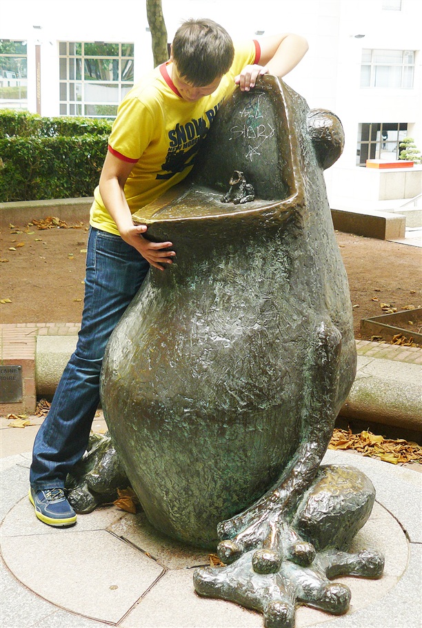 Лягушка в лягушке! Было бы странно, если бы французы не возвели такой памятник :) Родная тема. Смыслов можно найти множество. К примеру, не стоит широко открывать рот, если собираешься лишь немного квакнуть :))) Ещё вариант: поедая себе подобных, будь готов к разоблачению! А можно так: внутри большой страшной жабы часто сидит маленький жалкий лягушонок :))
