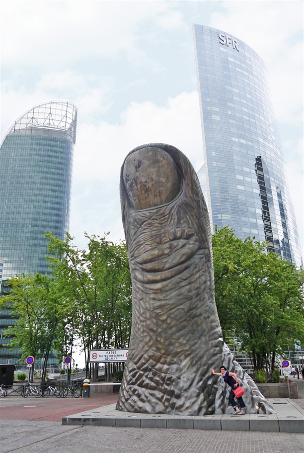 Ля Дефанс обладает большой коллекцией интересных арт-объектов. Самый известный из них - Большой палец. Его автор - эпатажный художник и француз по происхождению Сезар "Цезарь" Бальдаччини. Он изваял копию своего большого пальца, увеличил ее до 12 метров и установил в самом чопорном районе Парижа, как бы говоря: "а у нас всё отлично!". И вот тут не поспоришь.