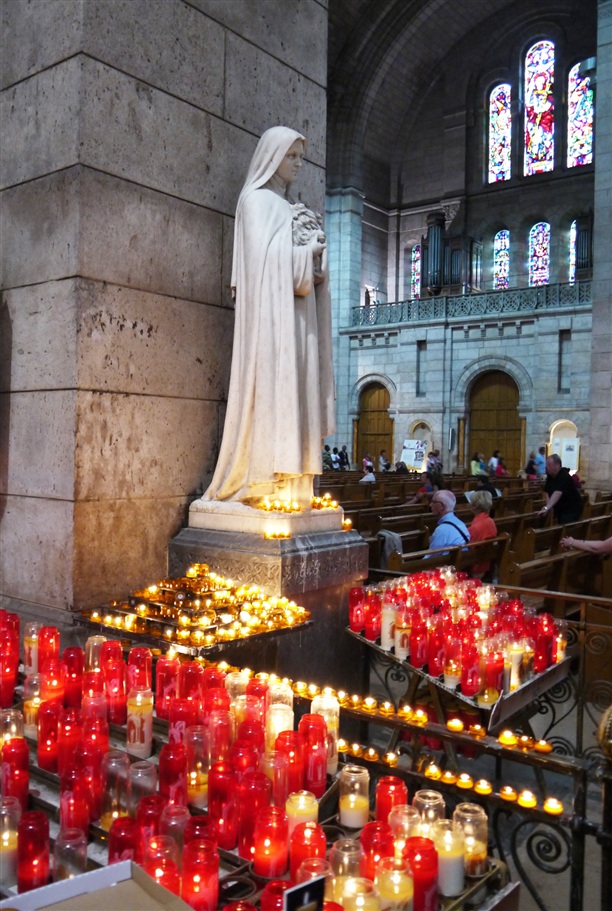 Удивительное место! Красивое и печальное одновременно. Никогда раньше я не видела (и не чувствовала) такого количества грешников, собранных в одном месте. Причем, не тех грешников, которые каждый свой прожитый день считают великим грехом и крестятся после каждого всхлипа... Сакре-Кёр - приют для потерянных душ (совсем потерянных!). Заходишь внутрь базилики и ощущаешь это. На каждом шагу коленопреклоненные "граждане Монмартра". Кстати, это один из немногих соборов в Европе, где НЕЛЬЗЯ фотографировать. Я сделала всего одно фото, ко мне сразу же подошел строгий чернокожий наблюдатель и закрыл объектив ладонью. Вуаля!