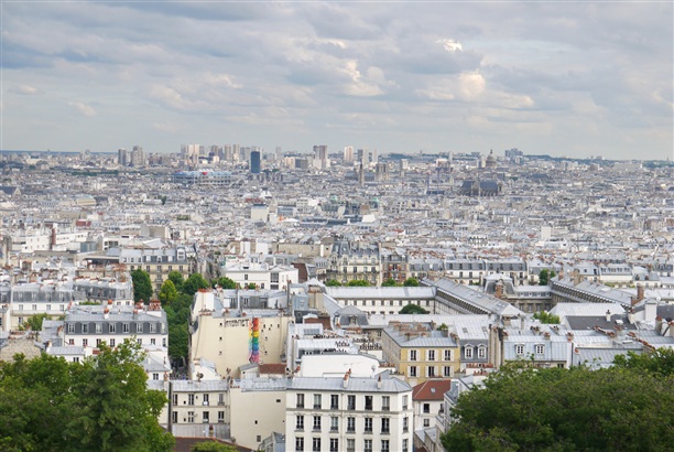 Далеко-далеко, почти в тумане холм Монмартр и базилика Сакре-Кёр. Где-то там, в самом удивительном районе Парижа, среди крошечных белых домов стоит наш отель :)