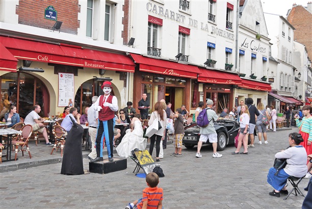 На площади Тертр бесчисленное множество ресторанчиков с национальной кухней. Вообще эта площадь напоминает коммуну художников и официантов - они там на каждом шагу :))