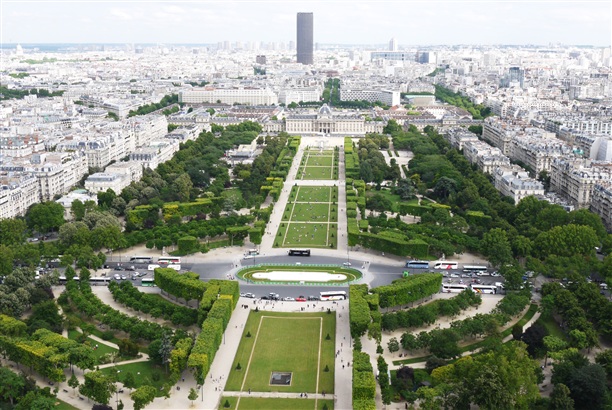 Покажу несколько. Это вид на Марсово поле, Военную школу и 210-метровую башню Монпарнас. Вечером эти милые зеленые лужайки превращаются в стихийное уличное кафе. Все запросто сидят на траве, пьют вино-шампанское, слушают музыку и любуются огнями Эйфелевой башни :) Однажды вечером мы тоже вписались в эту картинку.