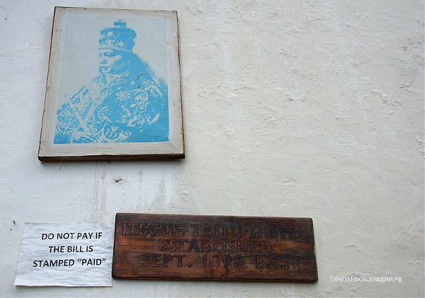 В отель Taitu Itegue я прибыл в 6 утра, где меня уже встречал мой друг и соратник по путешествиям Михаил. Отель Taitu Itegue является своего рода достопримечательностью Аддис-Абебы, так как это вообще первый отель открытый в Эфиопии. Да и цены на проживание в нём вполне приемлемые, хотя wi-fi в отличие от других отелей платный.