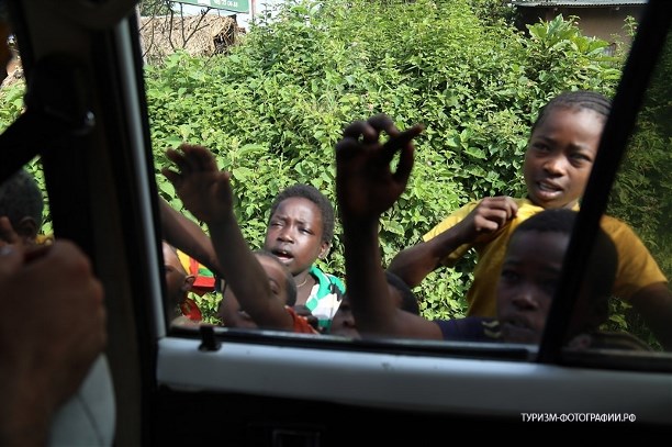 Стоит остановиться в каком-нибудь населённом пункте, местные дети тут же обступают автомобиль, с просьбами еды или денег.