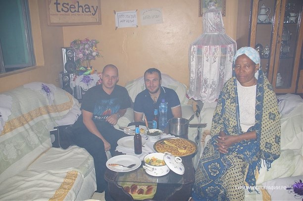 Мы тоже не остались в долгу и подарили заранее приготовленный подарок, тульские пряники и бутылку водки. Он был очень рад, но попросил, чтобы подарок мы преподнесли его маме. Мама была просто в восторге. Когда мы сели за стол, нас поздравили с Новым Годом, так как этот праздник в Эфиопии отмечается в сентябре (об этом я писал выше).