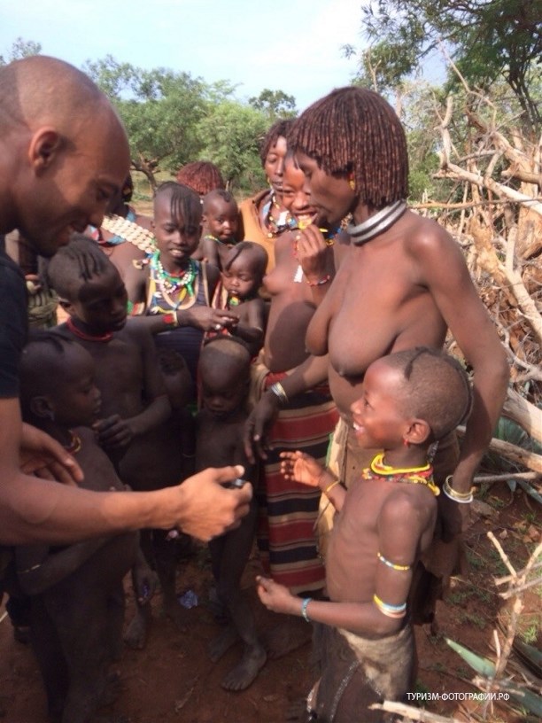 Жители деревни были очень рады нашему приезду, как ни как они получали от нашего гида деньги за посещение деревни и проживания в ней. Особенно хамер были рады видеть Энди они при встречи обнимались и  целовались, Энди целовал местных детишек и видно было, что это неподдельная любовь. Пока мы располагались и ставили платку для ночлега Энди рассказал нам о трудной жизни народа хамер. Люди предоставлены сами себе никаких социальных благ правительство им не предоставляет и даже  случае болезни люди лечатся сами, дедовскими способами. По этому Энди попросили. Если есть у нас какие - нибудь лекарства и вещи, которые не жалко, что бы мы подарили их местным.