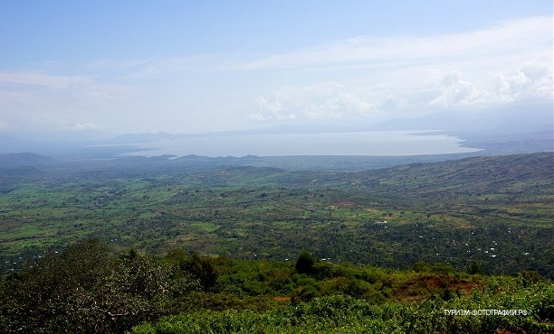 Утром перед тем как отправиться в тур по племенам долины реки Омо, мы попросили Энди отвезти нас туда, откуда можно выйти в интернет. Он отвез нас в один из отелей с рецепшена которого открывался вид на гору, разделяющую два озера - Абая и Чамо.