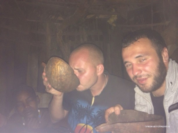 После не продолжительных танцев, хамер повели нас к общему костру. На подходе к остру нас встретила одна из семей около своего дома и пригласила в гости. После того как мы присели внутри хижины нам в руки сунули сосуд с местной брагой и сделали это с таким видом чтонас не поймут если мы откажемся.
