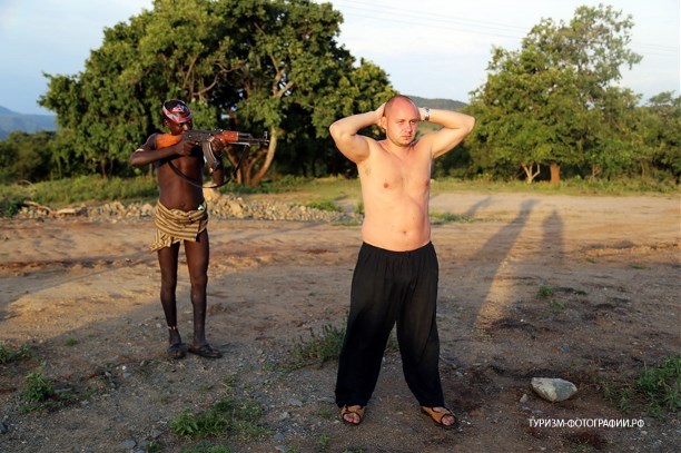 Мы попросили у него автомат на время фото съемки. Хотели взять пострелять за деньги, но он не согласился, сказал, что в таком случае сюда сбегутся местные племена, подумав, что получился какой-то конфликт.