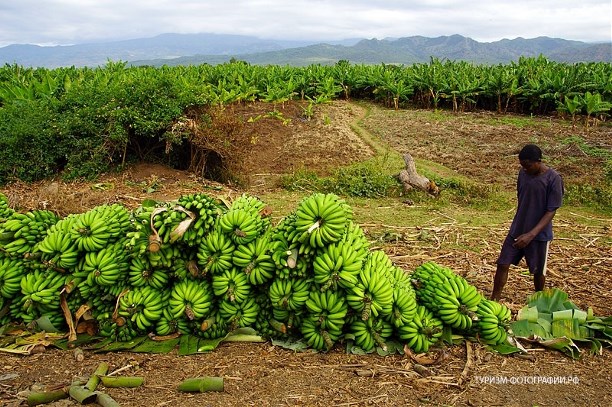 По дороге к Джинке, мы проезжали мимо банановых плантаций, с людьми работающими на них.
