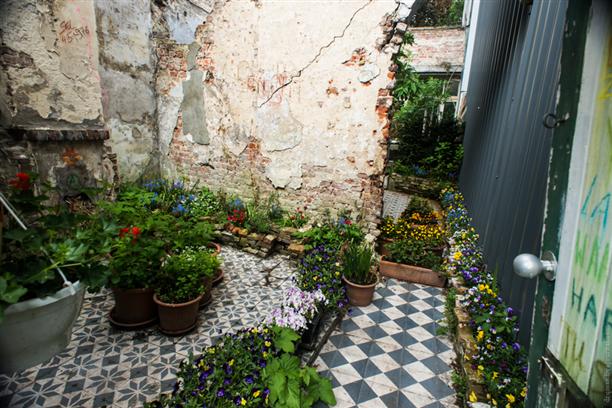 Случайно, гуляя по отдаленным районам, мы встретили вот такой минидворик с цветником. Можно беспрепятственно войти и поглазеть на растения. Вообще Боюгге не смотря на свою каменность, довольно зеленый город.
