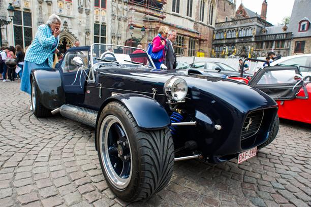 На площади рядом с бывшим рыбным, а ныне блошиным рынком проходила выставка гоночных машин. Гости города активно интересовались техникой.