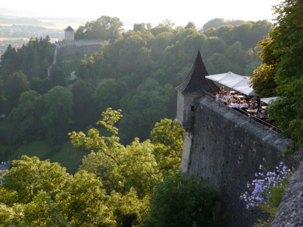 Со стен крепости открывается потрясающий вид на маленький, почти сказочный городок в окружении гор и изящный изгиб реки Зальцах.