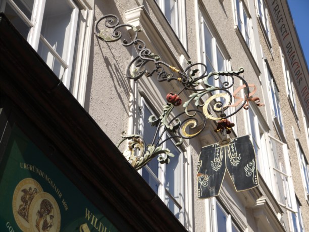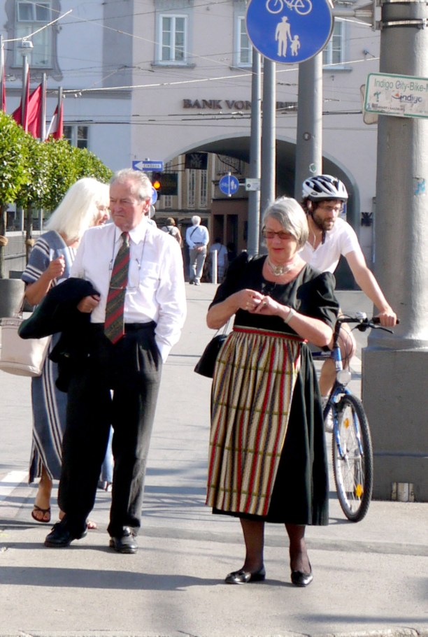 В Зальцбурге и специализированные магазины национальной одежды на каждом шагу. Я пыталась прикупить себе наряд, но никак не могла определиться с цветом клеток на фартуке :)) ...ну и если совсем честно, лишних десяти тысяч рублей с собой не было.