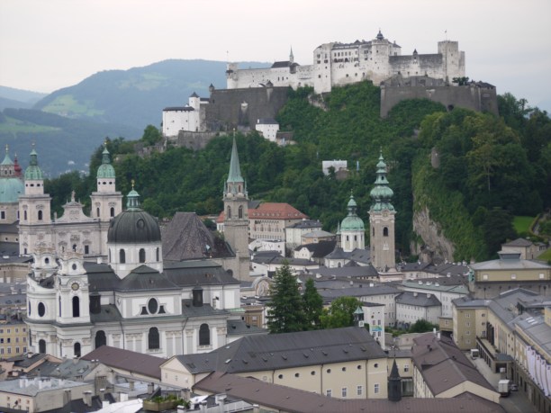 На горе рядом с городом еще в XI веке построили крепость Хоэнзальцбург и на сегодня это самая большая сохранившаяся крепость в Центральной Европе и визитная карточка Зальцбурга (не считая Моцарта, конечно же).