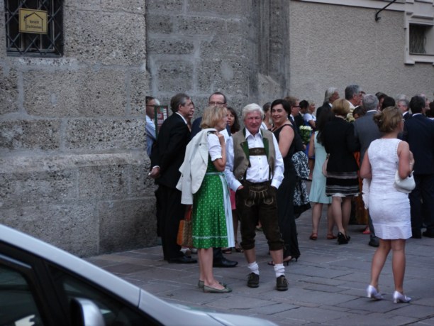 На улицах города очень много жизнерадостных австрийцев в кожаных шортах на помочах, шерстяных гольфах и шляпах с перьями в компании прелестных спутниц в национальных нарядах. Причём весь этот «карнавал» не зависит от дня недели и возраста участников.