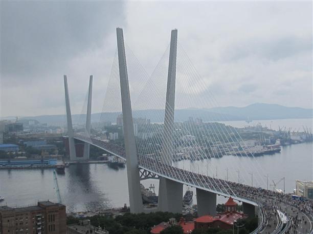 Вантовый мост — тип висячего моста, состоящий из одного или более пилонов, соединенных с дорогой прямолинейными стальными тросами – вантами. Мост на остров Русский официально никак не называется, но часто его так и называют – «Русский».