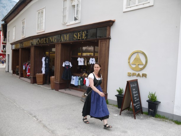 Спар (!) Его присутствие выдаёт только "золотой логотип" на стене - больше никаких кричащих вывесок. В Гальштате в почёте национальная одежда (точно так же, как и в Зальцбурге). И встретить на улице девчонку в белой блузке, сарафане и клетчатом фартуке - обычное дело.