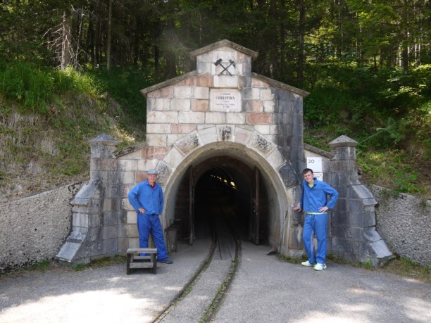 Есть и фуникулёр. Но он, понятное же дело, для слабаков! :)) Поэтому вливаемся в ряды бодрых любителей скандинавской ходьбы. И топаем километра три-четыре вверх по пешеходному серпантину. Австрийская жара способствует выработке соли ещё до прихода в шахты. :))