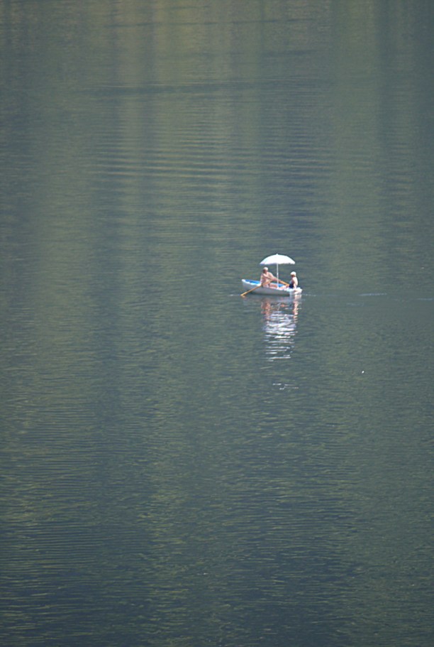 Чем ближе мы подплывали, тем больше в кадре становилось лодочников, байдарочников и гондольеров. Если в городе почти нет улиц, горожанам ничего не остаётся кроме того, как «гулять по озеру»...