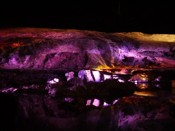 Нас сразу разбили на группы - дойч зольдатен и инглиш пипл. Мы и около десятка азиатов вошли в "инглиш пипл" :)))) Сначала шёл рассказ на немецком, потом он дублировался на английском (для нас и азиатов). Чтоб никто не чувствовал себя обделённым знаниями, через каждые 20 метров нам показывали разные учебные фильмы. Причём показывались они самым неожиданным образом - на гигантской ископаемой тарелке, на зависшем в воздухе шаре, на поверхности подземного озера. Настолько качественную и продуманную экскурсию я видела впервые. Было интересно.