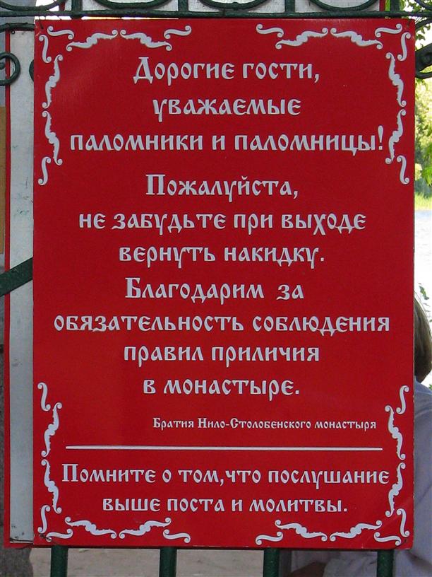 Пошли-ка домой, катер уже на подходе. Опоздаю, придётся нанимать моторку, а она тут не дёшева. 3 км - 500 рубликов! Выходя заметил табличку.