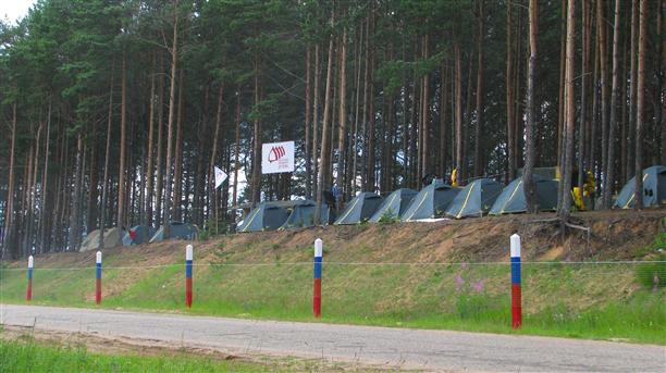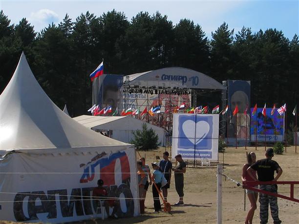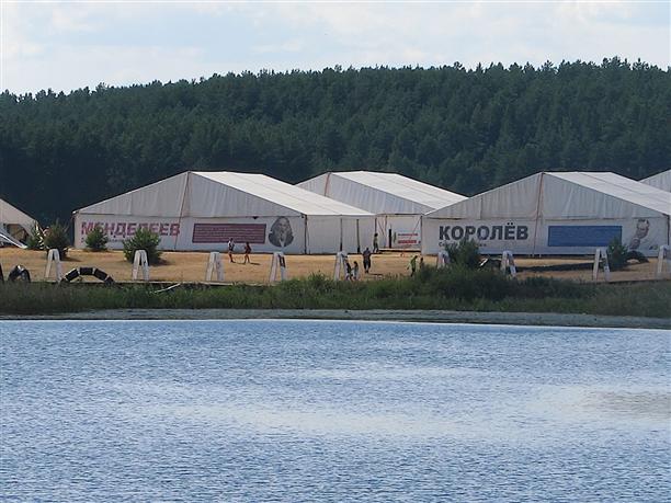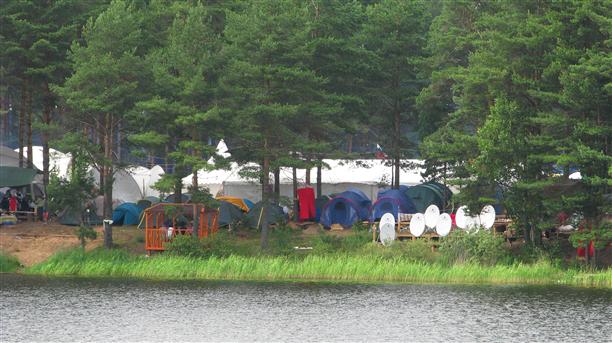 Справа, за лесом всегда располагается лагерь «Наших» а именно на эту водную гладь приводнялся гидросамолёт с В.В. Путиным на борту.