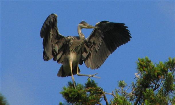 А я продолжу свой рассказ об острове, как о единственном в Тверской области месте, где гнездятся серые цапли. Много кадров сделать не удалось, птенцы встали на крыло и возвращались в гнездо поздно вечером. Несколько портретов цаплят. Сосны ну очень высокие! Приходится отходить подальше, а там оптика не достаёт.