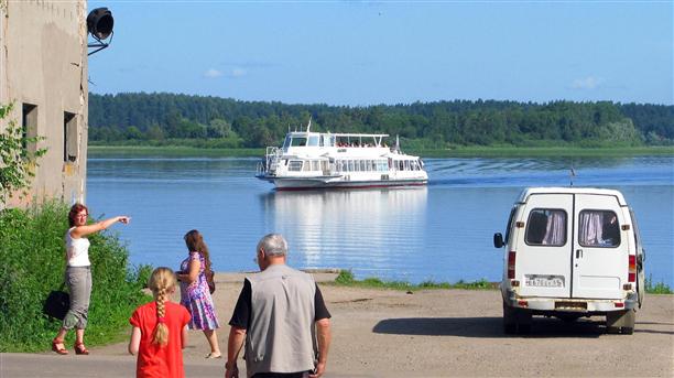 Вот и наш теплоход, который доставит меня к острову с очень интересным названием Городомля.
