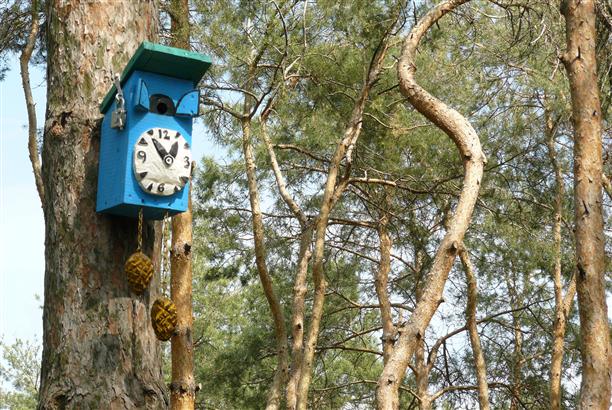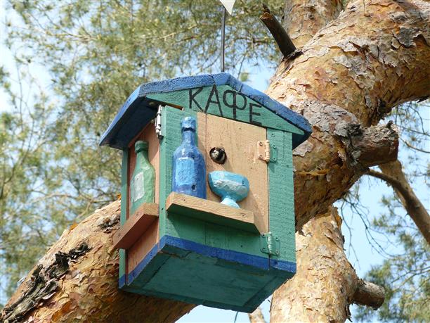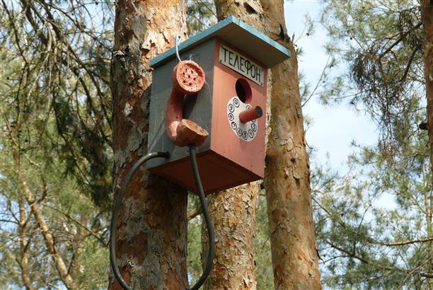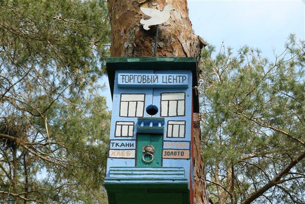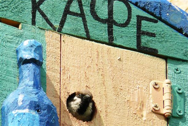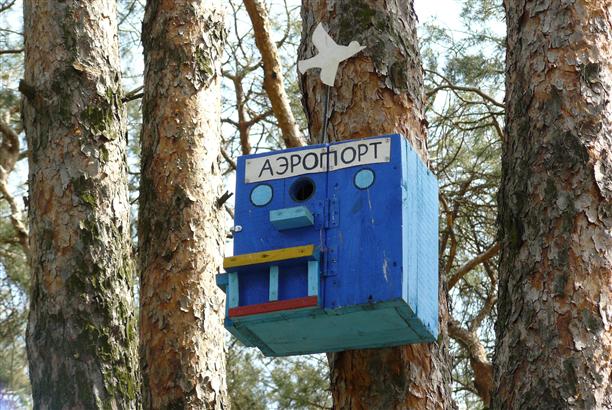 Есть "видовое окно" для любования на пейзажи и парк птиц с арт-скворечниками :) В скворечнике со статусом "кафе" нами был замечен пернатый и очень любопытный воронежец :))) Он выглядывал, щелкал клювом и по-хозяйски прятался в кафе. Очень смешной.