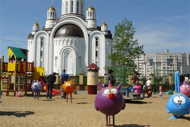 Там же - перед храмом Ксении Петербужской - живут Смешарики :) Забавное соседство.