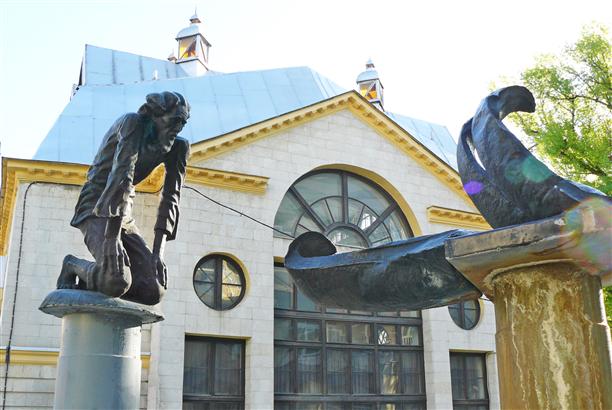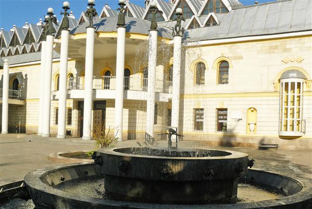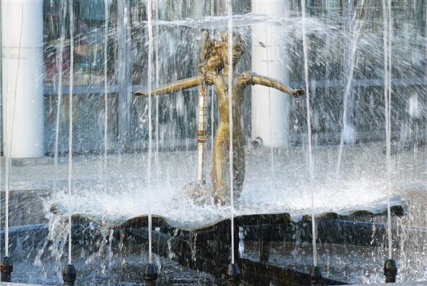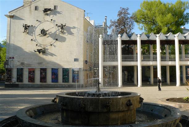 На площади перед кукольным театром фонтан с Дюймовочкой на листе кувшинки.