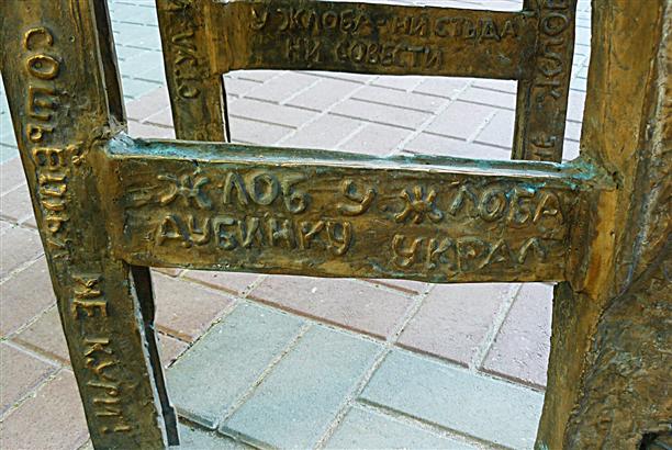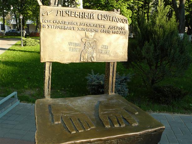 Бронзовый лечебный стул №0001 стоит на ул. Платонова. Надпись на стуле гласит: «Всяк садящийся заряжается добротой и утрачивает жлобскую свою натуру». Совершенно не случайно стул стоит у Дома областного правительства. Лечебный стул еще в 1994 году придумал воронежский художник Александр Ножкин, а идею воплотили не так давно - в 2011 году - его друзья. Ножкин, к сожалению, не дожил... Стул, как сказочная машина! Стоит один раз сесть - и жадный станет щедрым, злой - добрым, а невежа почувствует непреодолимую тягу к знаниям. Хороший стул, правильный :)