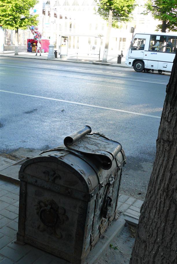 На другой стороне проспекта Революции, напротив Кукольного театра - сундук с сокровищами и говорящий попугай.